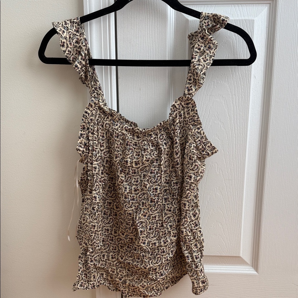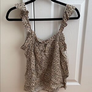 Elevate your style with this chic leopard print top. Featuring ruffle straps, it's perfect for any occasion.