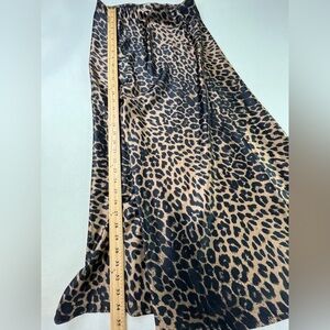 Leopard Print Satin Maxi Skirt High Waisted Elastic Waisted Size Medium