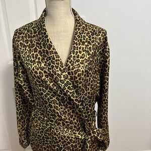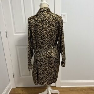 Luxurious satin robe with a striking leopard print design. Perfect for lounging in style and comfort.