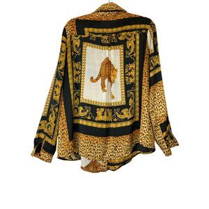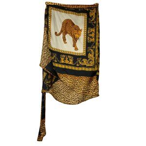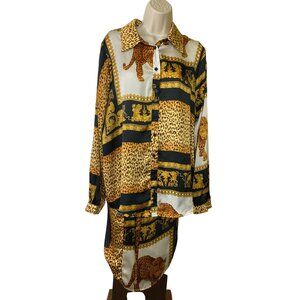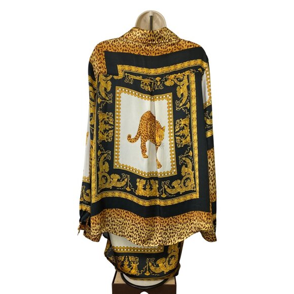 Leopard Print Satin Shirt & Skirt Set US 10 Tall Baroque Luxury Glamour Mobwife