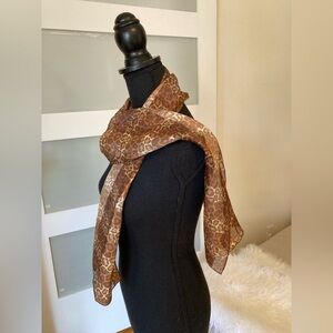 Stylish leopard print scarf in shades of brown and tan. Perfect for adding a chic touch to any outfit.