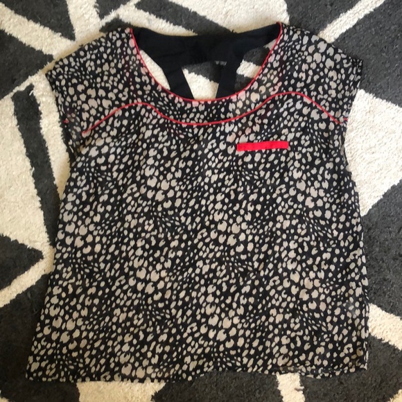 Preloved and only worn a couple of times. Cute red lining with faux pocket detail. Back has a very cute black cut out detail. Fits a M-L.