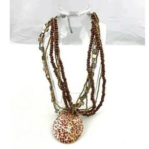 Leopard Print Shell Pendant Layered Necklace Seashell Abalone Shells Wood Bead
