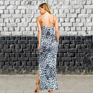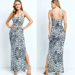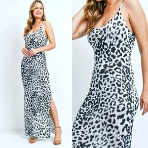 Leopard Print Side Slits Cami Maxi Dress black - white party contemporary