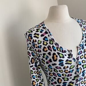 Leopard Print Sleep Romper Womens Sz Small White Multi Color Cozy Sleepwear