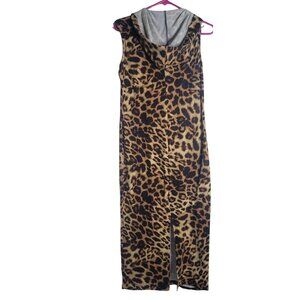 Leopard Print Sleeveless Maxi Hooded Dress W/ Pockets By Heart & Hips Size M
