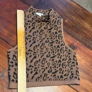 Leopard Print Sleeveless Turtleneck Top Bozzolo Size S/M