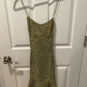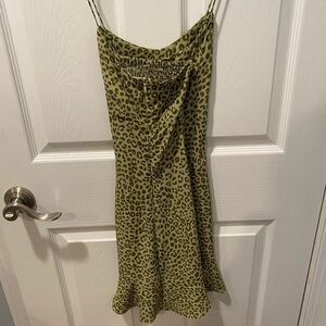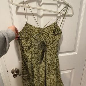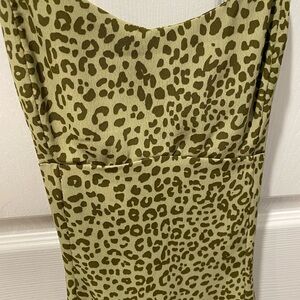 Green leopard pattern slip dress. Very lightweight and breathable for summer. Crisscross back thin straps. Zipper on the side