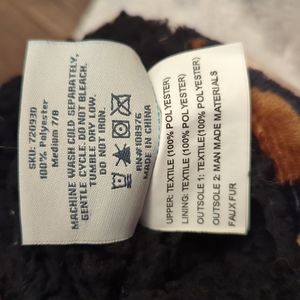 Super comfortable leopard print slippers with fuzzy interior and fluff balls on the sides. Size: M (women's shoe size 7-8)