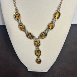 Leopard Print Stones Necklace Fashion Jewelry With Added Ext Chain Unbranded