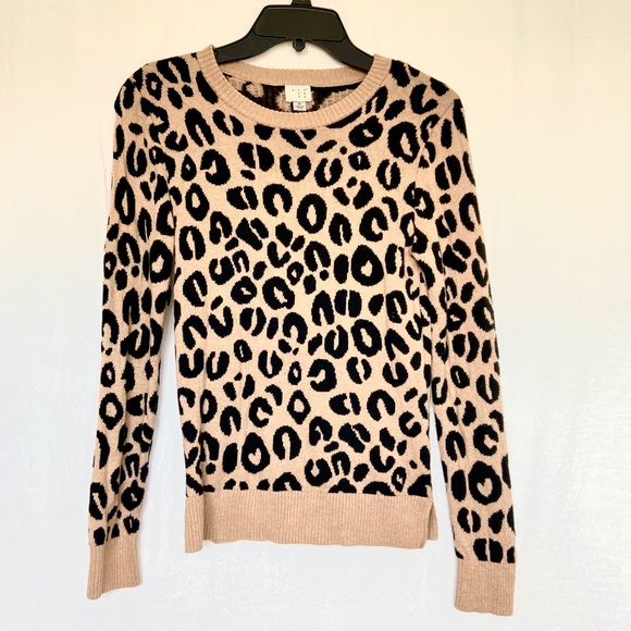 Women’s leopard print sweater. Bottom trim has side slits. Worn only once!