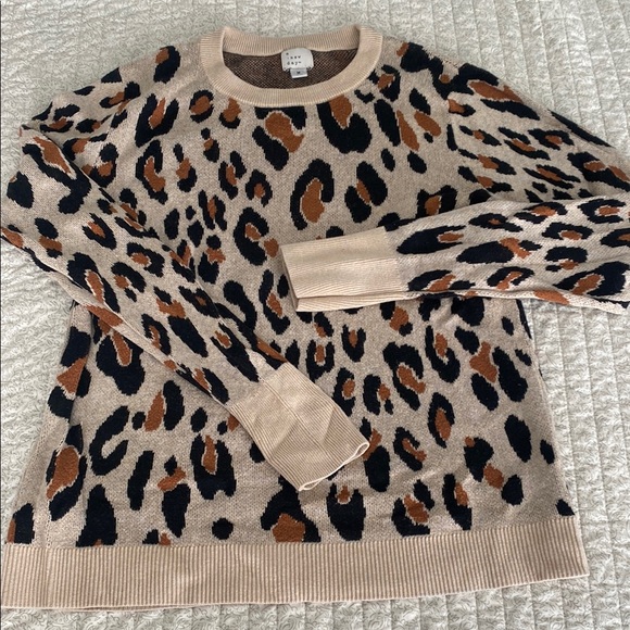 Leopard print crew neck sweater, size M, smoke free home, good condition