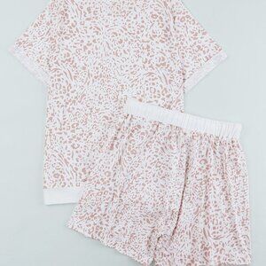 Leopard Print Tee and Drawstring Pocketed Shorts Lounge / Pajama Set New