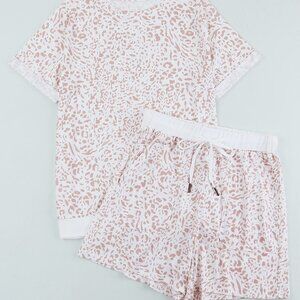 Leopard Print Tee and Drawstring Pocketed Shorts Lounge/Pajama Set (Top and Bottom) New Never Worn