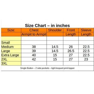 Sizes: M, L, XL, 2XL - please measure yourself and compare to the size chart