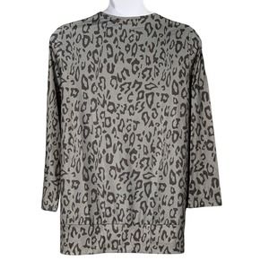 Leopard Print Tunic Long Top Lightweight Black Gray Jersey Fabric Plus 1XL NEW