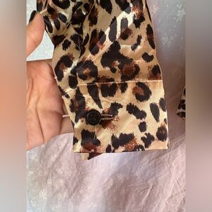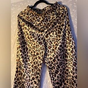Stylish leopard print two-piece set. Features a long-sleeve top and matching pants. Perfect for a bold look.
