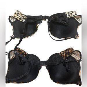 Set of two leopard print underwire bras. Features bold animal patterns in black, tan, and brown. Includes 2