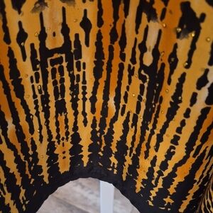 Bold animal print is a loose fitting lounge blouse. Be comfortable and styling.