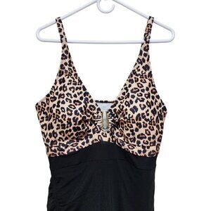Leopard Print V-Neck Swim Dress With Ruched Sides & Built-In Bottoms Size XXL