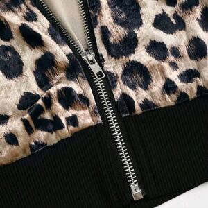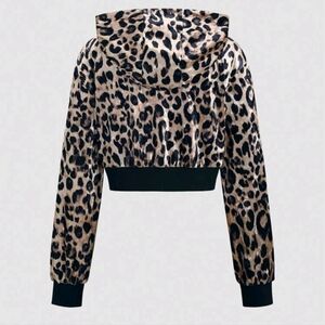 Leopard Print Velvet Cropped Y2K Style Casual Zipper Hoodie