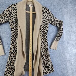 Leopard Print Waterfall Front Cardigan Long Sleeve Sweater Womens Small Yet...