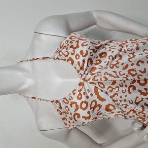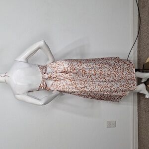 Animal Print White Brown Halter Neck Open Back Midi Dress Size L