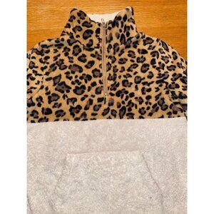 Leopard Print & White Sherpa Quarter-Zip Pullover Sweatshirt For Women