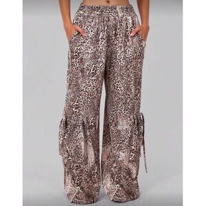 Elevate your style with these chic leopard print wide-leg pants. Perfect for a bold, fashionable look.