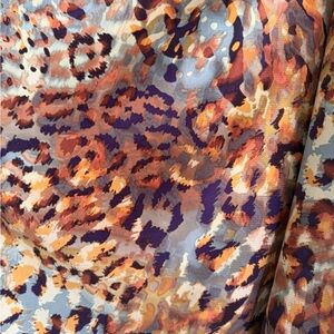 Hand rolled edge, but no brand name. Multicolored leopard print.