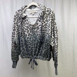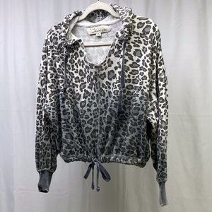 Leopard Print Women's Cropped Hoodie Lightweight Sweatshirt Vintage Havana Small