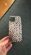 Stylish leopard print phone case featuring a sleek black and gold design. Perfect for adding a touch of elegance to your device.