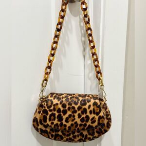 Brand new. Only one available. Handmade from real hair-on horsehide leather, beautiful leopard print with fold over flap design. Includes 2 chain styles, use in multi ways, wristlet, shoulder bag or as a crossbody. Also can match different outfits. Spacious enough for your phone, wallet, cosmetics, sunglasses, credit cards, keys & other items. It’s perfect for casual wear, any event, evening out or a gift for an important someone.