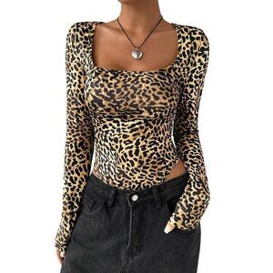 bodysuit, animal print top, body manga larga estampado, top ceñido sexy, outfit fiesta mujer, leopard print bodysuit, animal print long sleeve top, trendy bodysuit women, brown leopard shirt, stylish going out outfit