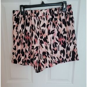 Stylish leopard print women's shorts featuring a chic pink and black design. Perfect for casual outings or a trendy look.