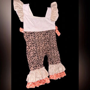 Leopard Pumpkins Flutter Sleeve Romper Size 12-18m