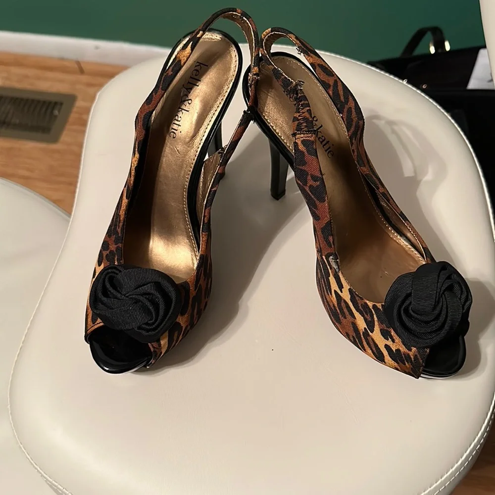 Leopard and black 4.5” heels. Size 7, worn maybe a few times but the sole and heel are still in perfect condition. Feel free to make an offer or ask questions!