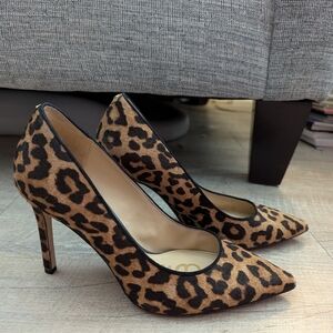 Faux-fur leopard print pumps. 4 inch heel. In great condition! A classic print and style, perfect to add a little fun to your outfits!