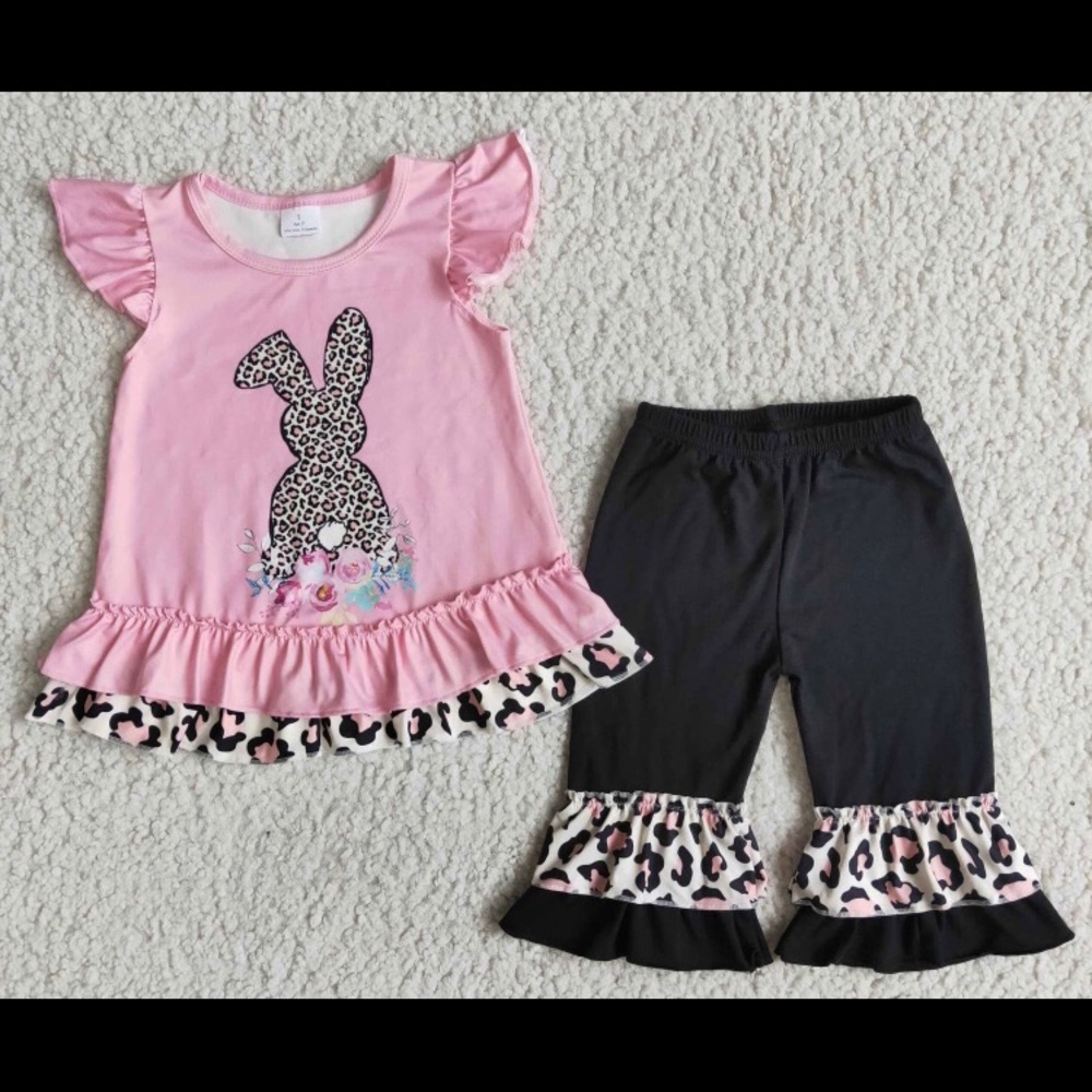 Leopard Rabbit Ruffle Capris Girls Outfit