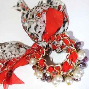 Leopard Red Black White Tie Wrap Bracelet or Choker Pearl Crystal Beaded