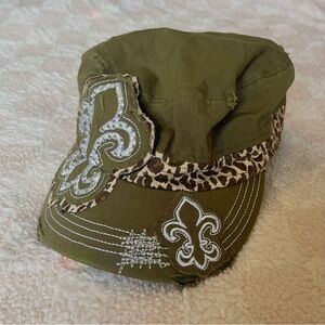 Leopard Rhinestone Bedazzled Distressed Hat