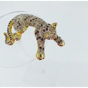 Leopard Rhinestone Brooch Gold Tone Big Cat Statement Piece Shoulder Stunning