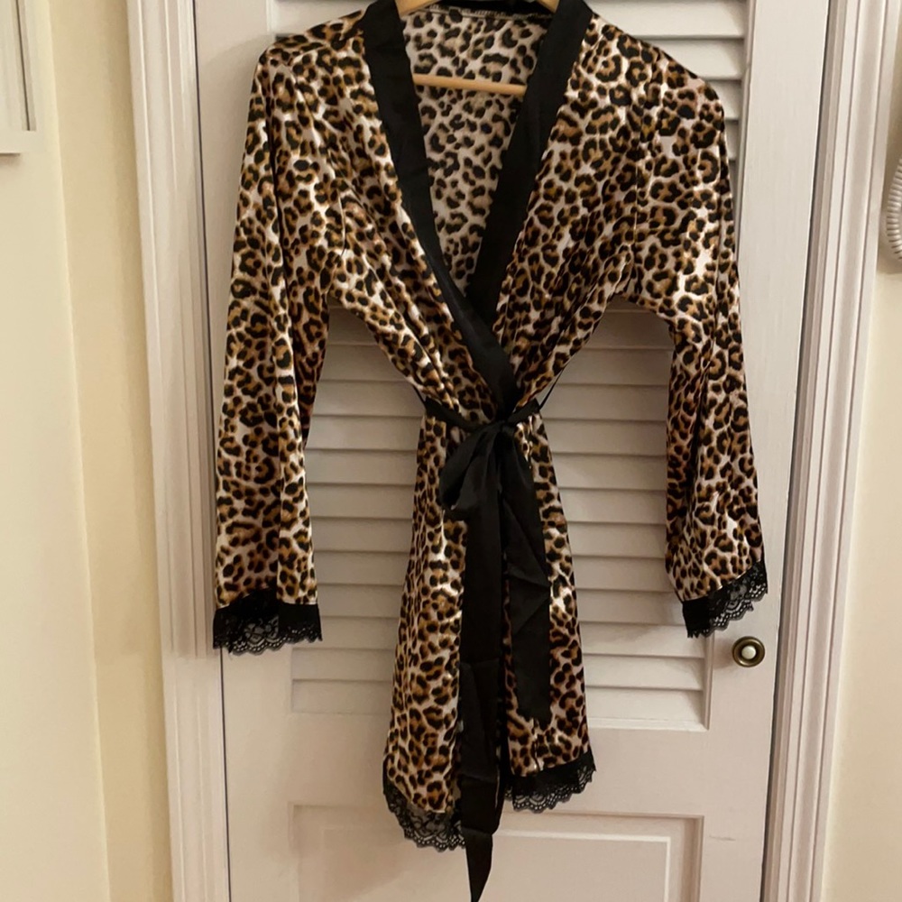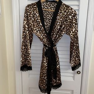 Leopard Robe with lace trim on bottom and sleeves- Size S - unknown brand - worn once