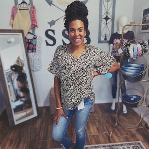 Leopard Print Blouse with ruffled sleeves! 🛍💗