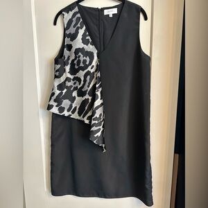 This chic shift dress features a v-neck and black and gray leopard ruffle design. Lightweight. Excellent condition!