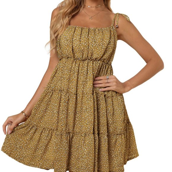 Lined leopard print silky comfy dress with thin adjustable tie straps, above the knee length