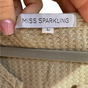 Miss Sparkling Green Waffle Knit Top with Leopard and blush ling sleeves. V-Neck