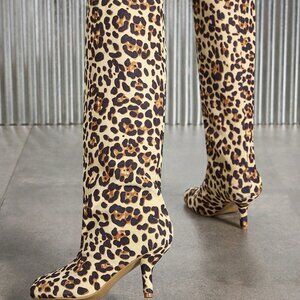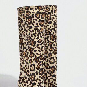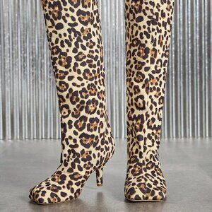 Leopard Sexy Women's Classic Runway Elastic knee high square toe Boots