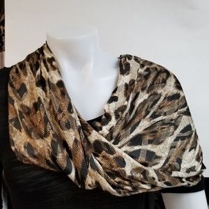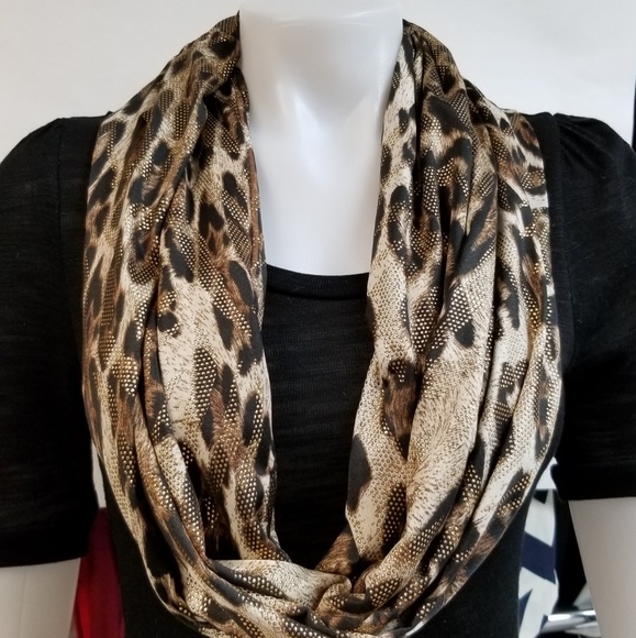 A single loop Scarf fashion, chic, fancy, casual you name the style. Made out of soft Leopard and gold fabric. In the picture I showed different ways to wear, such as un shoulder, single loop, off shoulder, but you can find your own style πππ