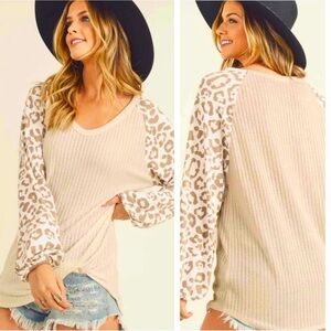 Leopard Sleeve Soft V-neck Sweater. Loving everything about this sweater especially the balloon sleeves!